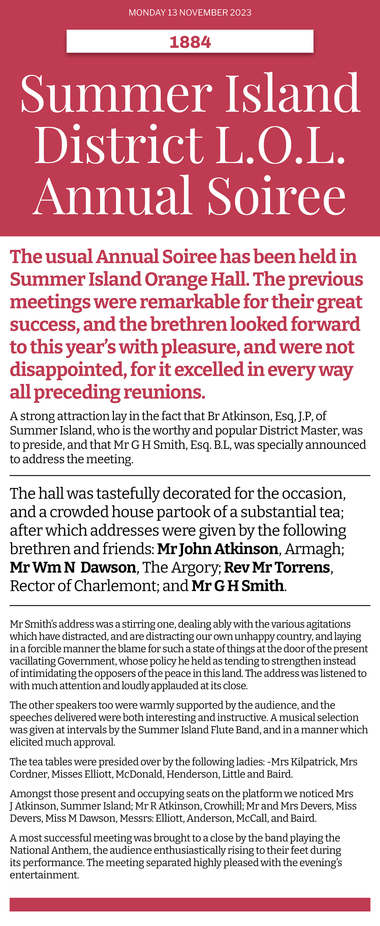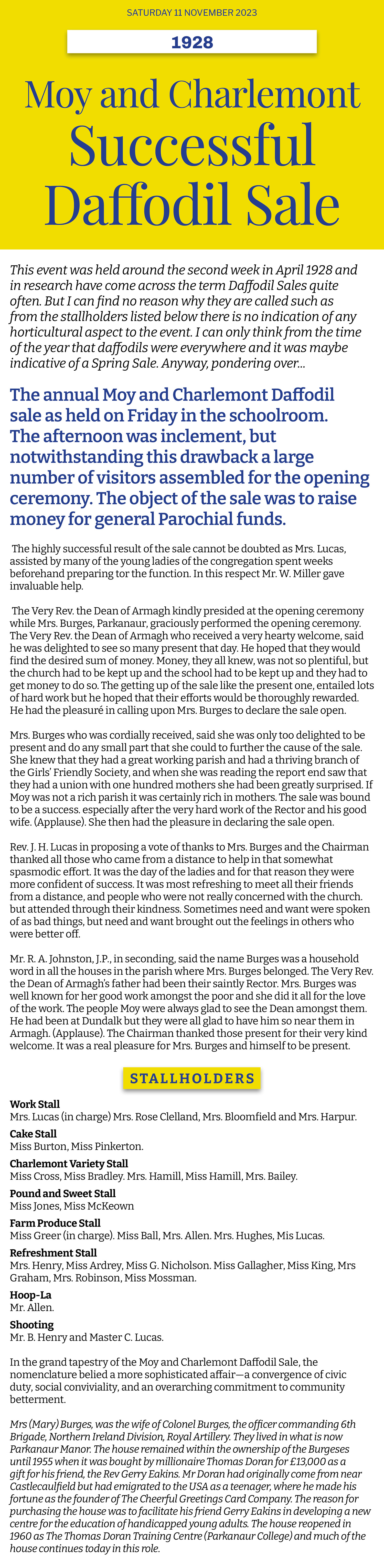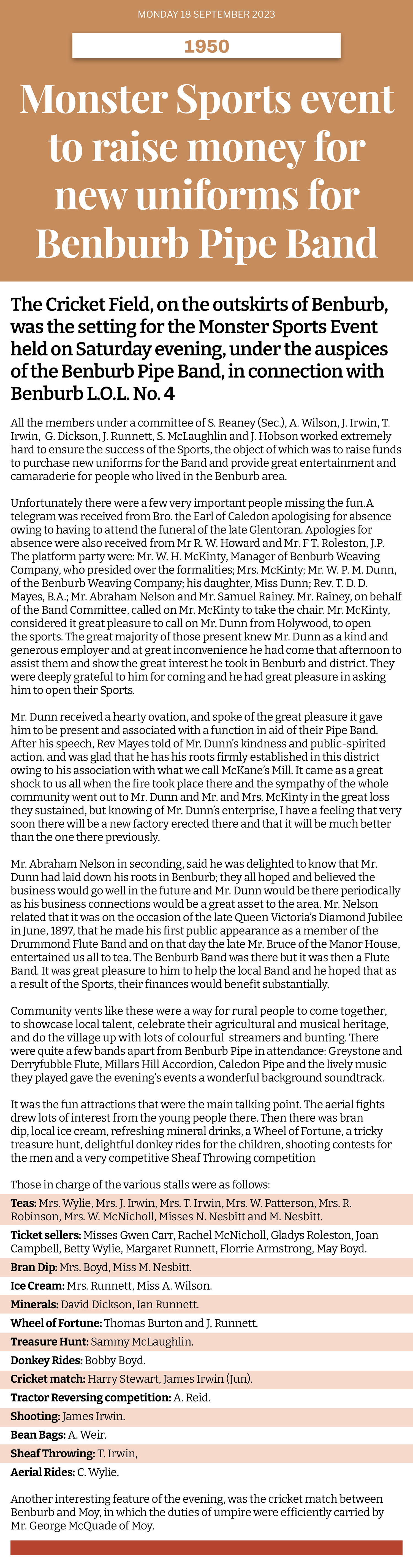 Adapted from a report in Dungannon Observer plus additional information