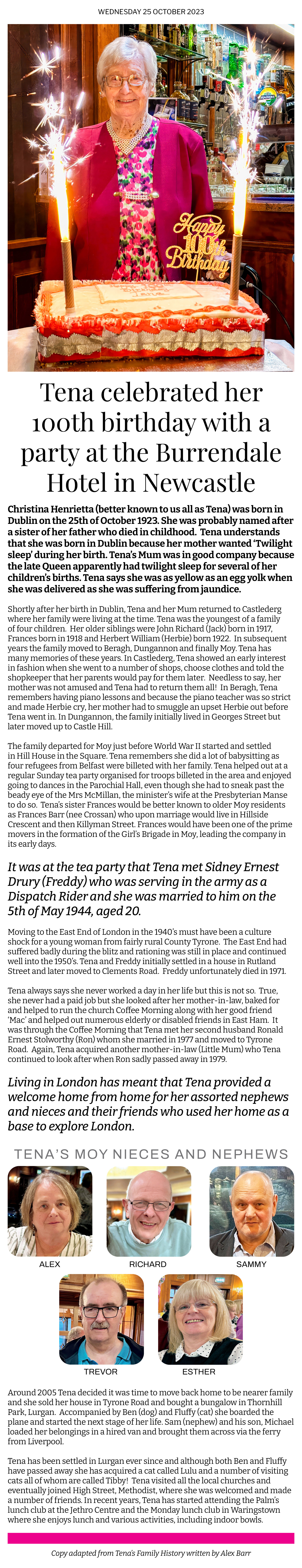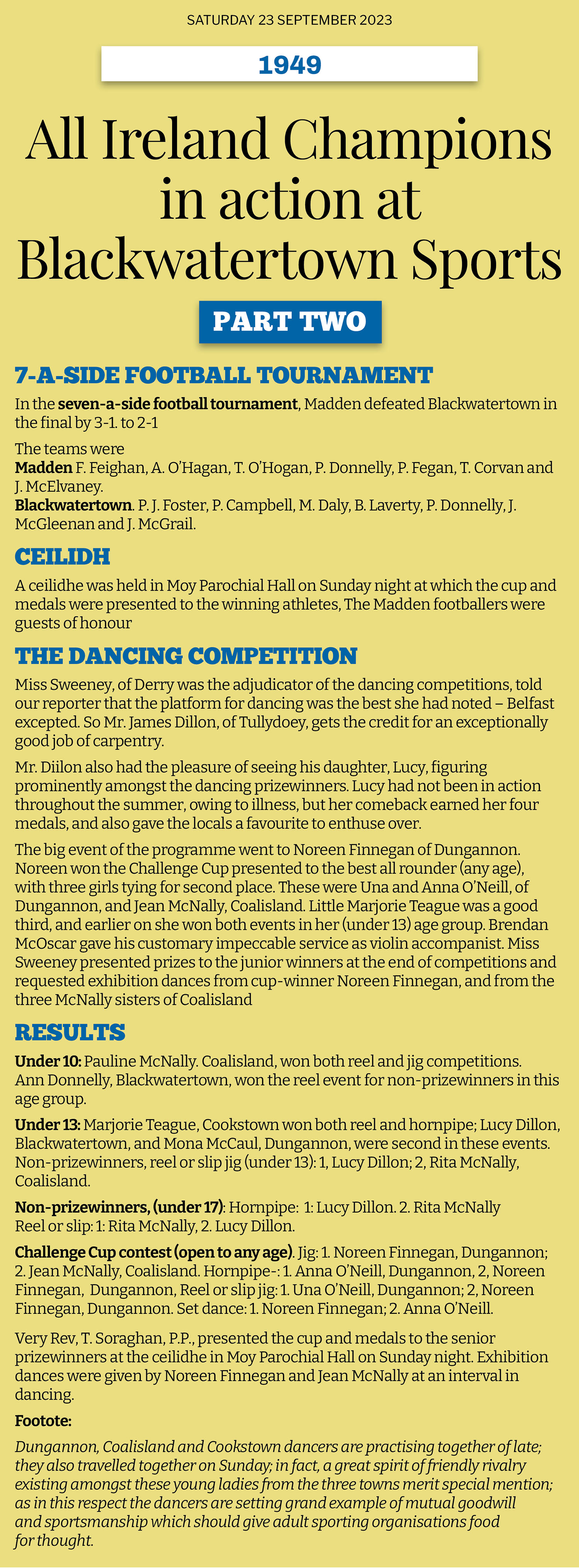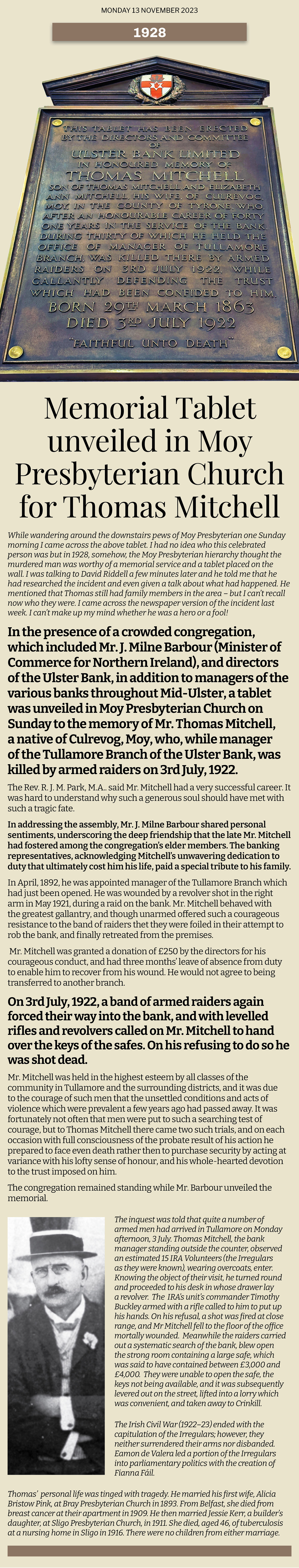 Adapted from a report in Dungannon Observer plus additional information