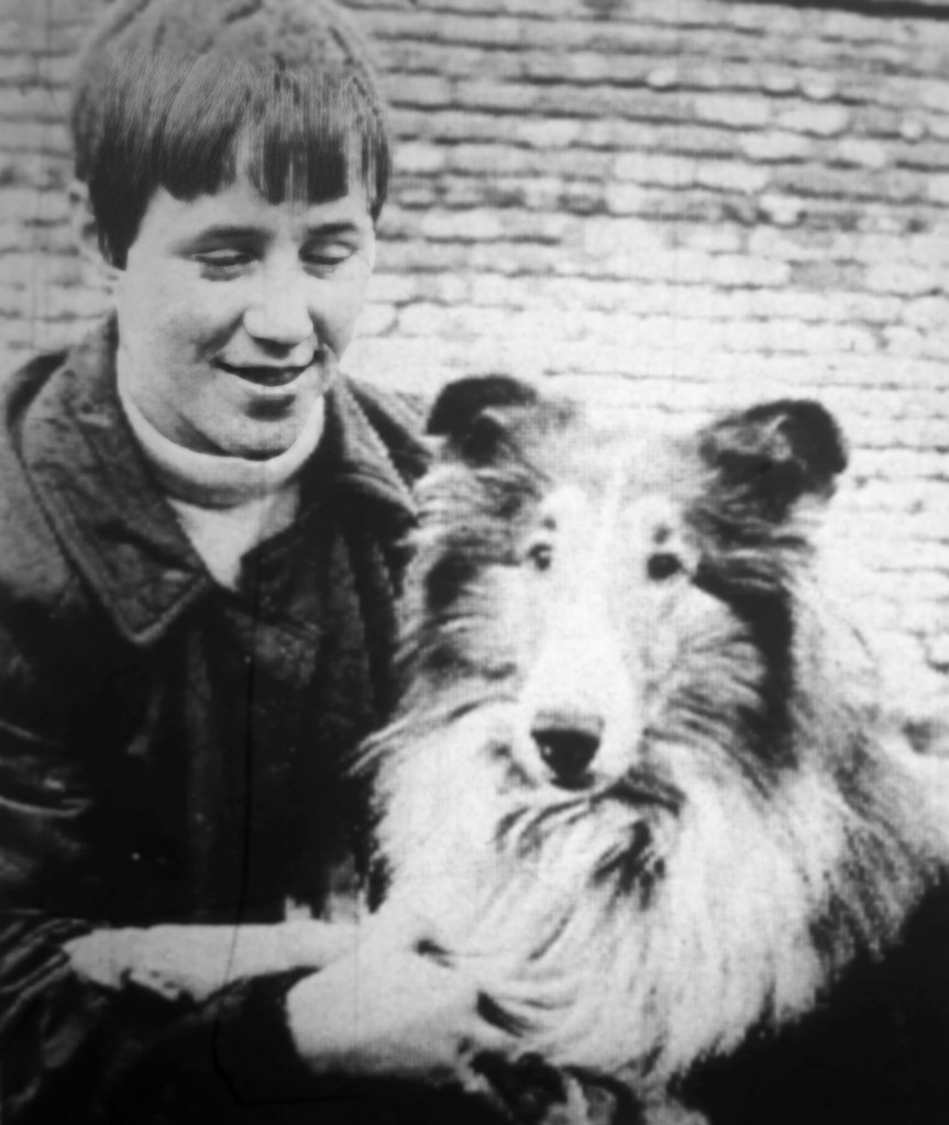 Margaret Anderson with her English sheepdog called Dawn